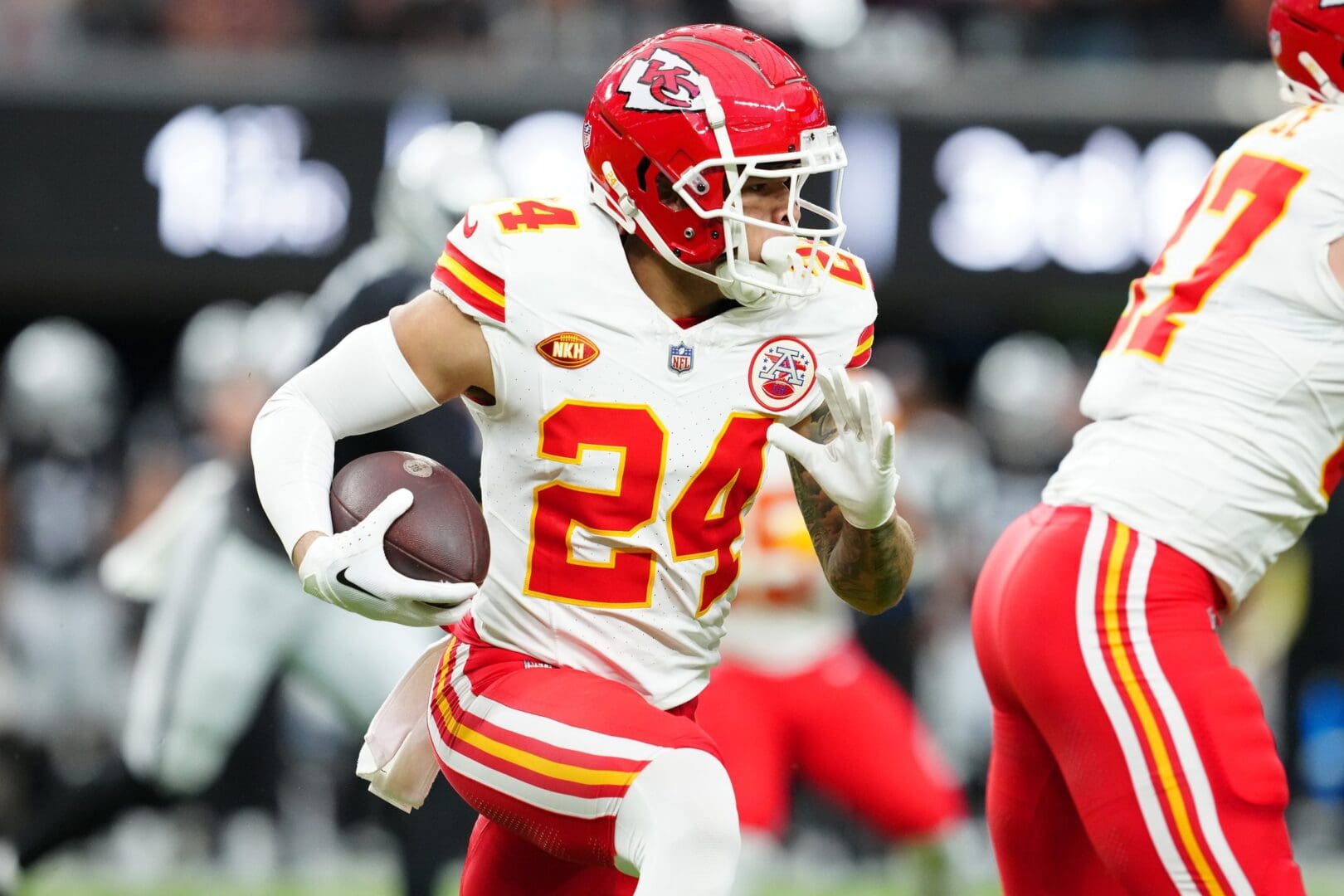 In 2024, Moore has appeared in six games for the Chiefs and caught no passes on three targets.