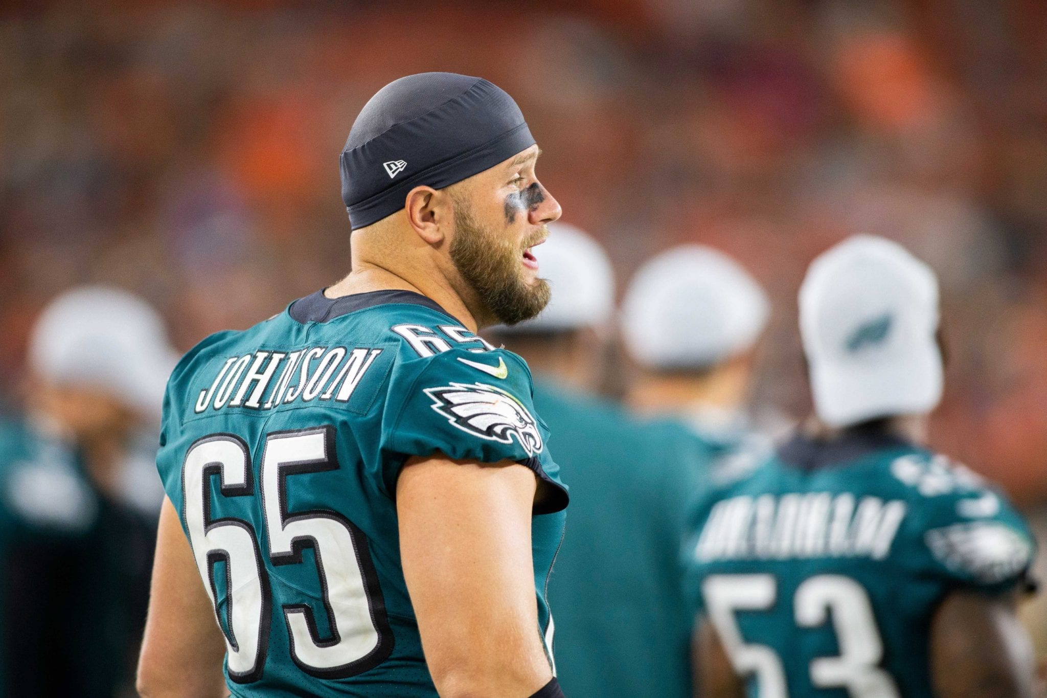 In 2019, Johnson appeared in 12 games for the Eagles, starting 12 at right tackle.