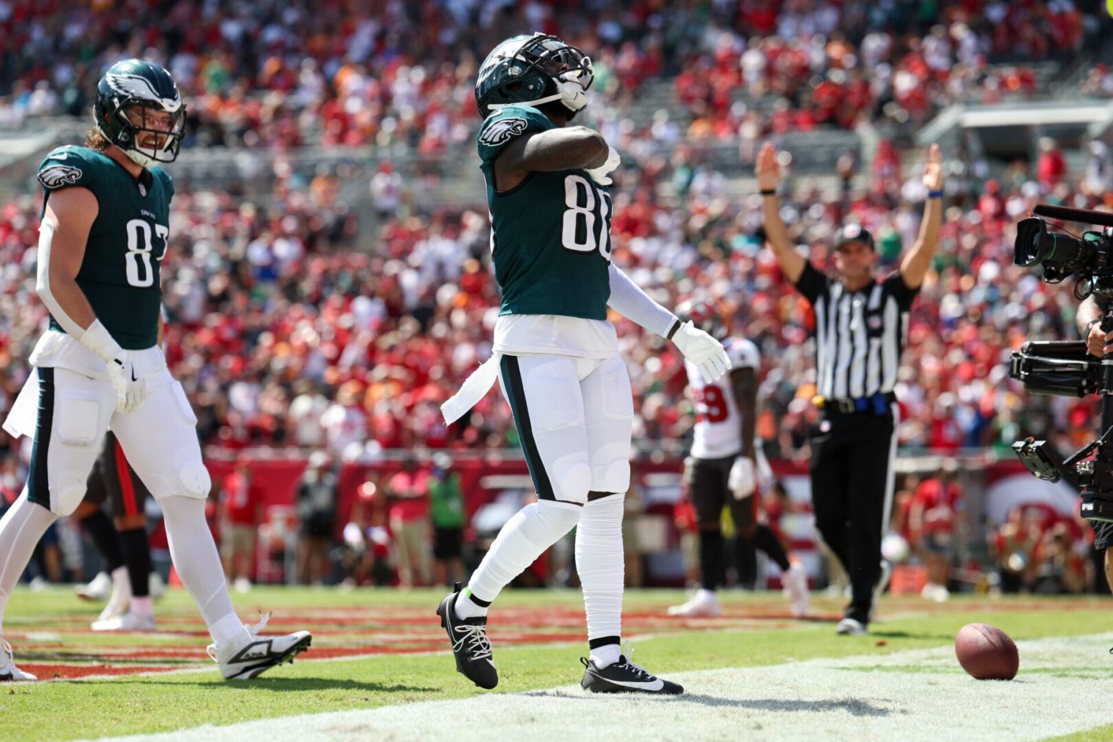In 2024, Campbell has appeared in five games for the Eagles and caught six passes for 30 yards and one touchdown.