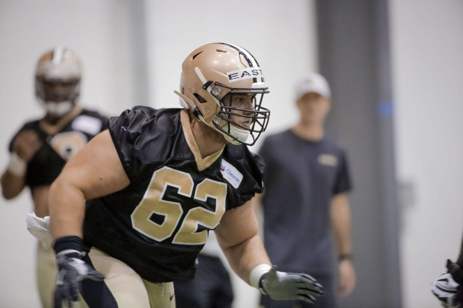 In 2020, Easton appeared in 12 games for the Saints and started nine games for them.