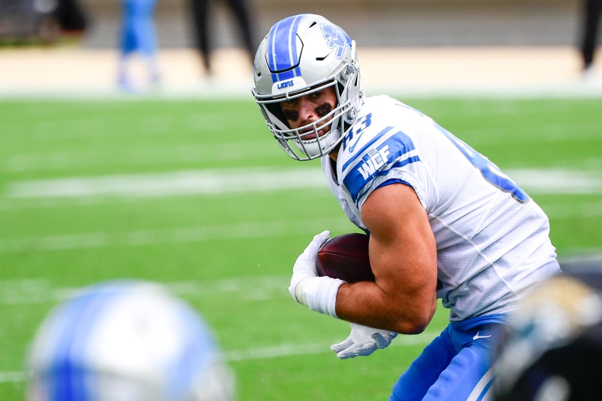 In 2020, James played in all 16 games for the Lions, recording 14 catches for 129 yards and two touchdowns.